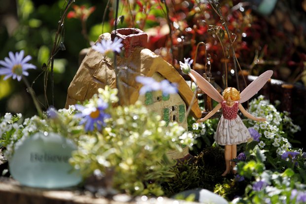 With imagination, a fairy garden can be created almost completely with collected or homemade items such as shells, pebbles, acorns, ceramic knickknacks, wire gazebos, ponds, signage and twig fences. You can also augment with miniature furnishings found online at nurseries or craft shops. From $3 to $45, you’ll find tables, pails, watering cans, garden tools, farm animals, lanterns, cottages and, of course, fairies. (Step 4)